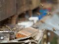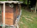 Links: Ein besonder schönes Bild. Flugbetrieb am Stock. Man sieht, wie die Bienen abfliegen und ankommen. Rechts: Meine Wirtschaftsvölker.